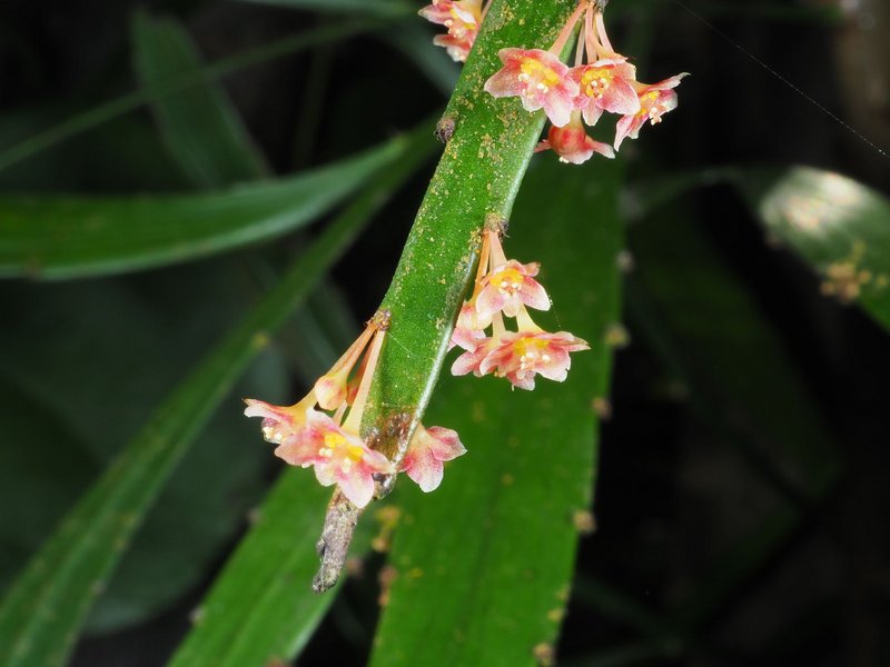 Busk-myrobalan (Phyllanthus arbuscula) er usædvanlig ved, at dens blomster tilsyneladende sidder direkte på bladene, noget blomster ellers aldrig gør. Ved nærmere eftersyn viser det sig dog, at "bladene" i virkeligheden er fladtrykte stængelstykker, der har overtaget bladenes funktion.